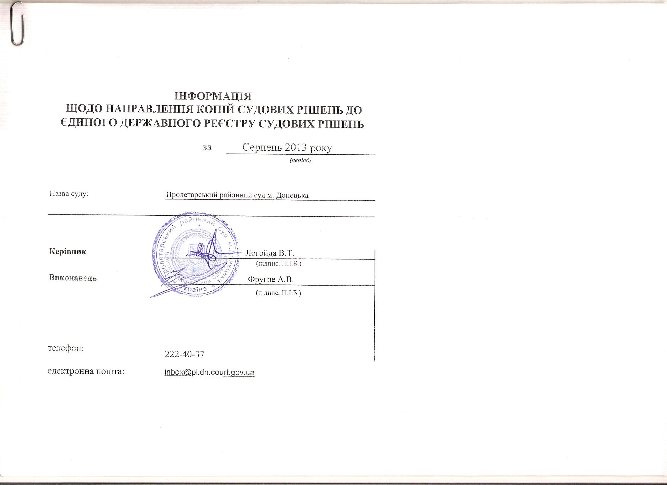 Пролетарський районний суд м. Донецька